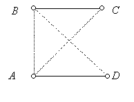 Kiválasztunk egy maximális fokszámú embert, A-t, (egy ember foka=az általa ismert emberek száma), és egy B-t, akit nem ismer. Ha van olyan C, akit B ismer, de A nem, akkor – mivel B foka nem nagyobb A fokánál –, van olyan D is, akit A ismer, de B nem. Ezek négyen jók.
